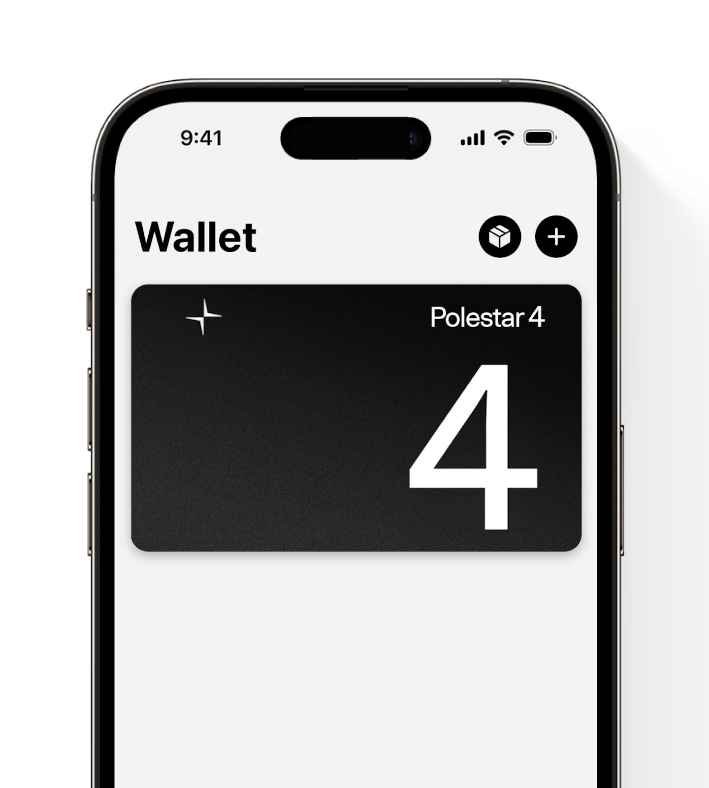 Drivers with an iPhone can sync their digital key with Apple Wallet¹ and use it to lock, unlock, and start Polestar 4. The main driver can administer and manage secure copies of the key with others, and it works with the car’s profile memory to store the preferred settings for up to six drivers.