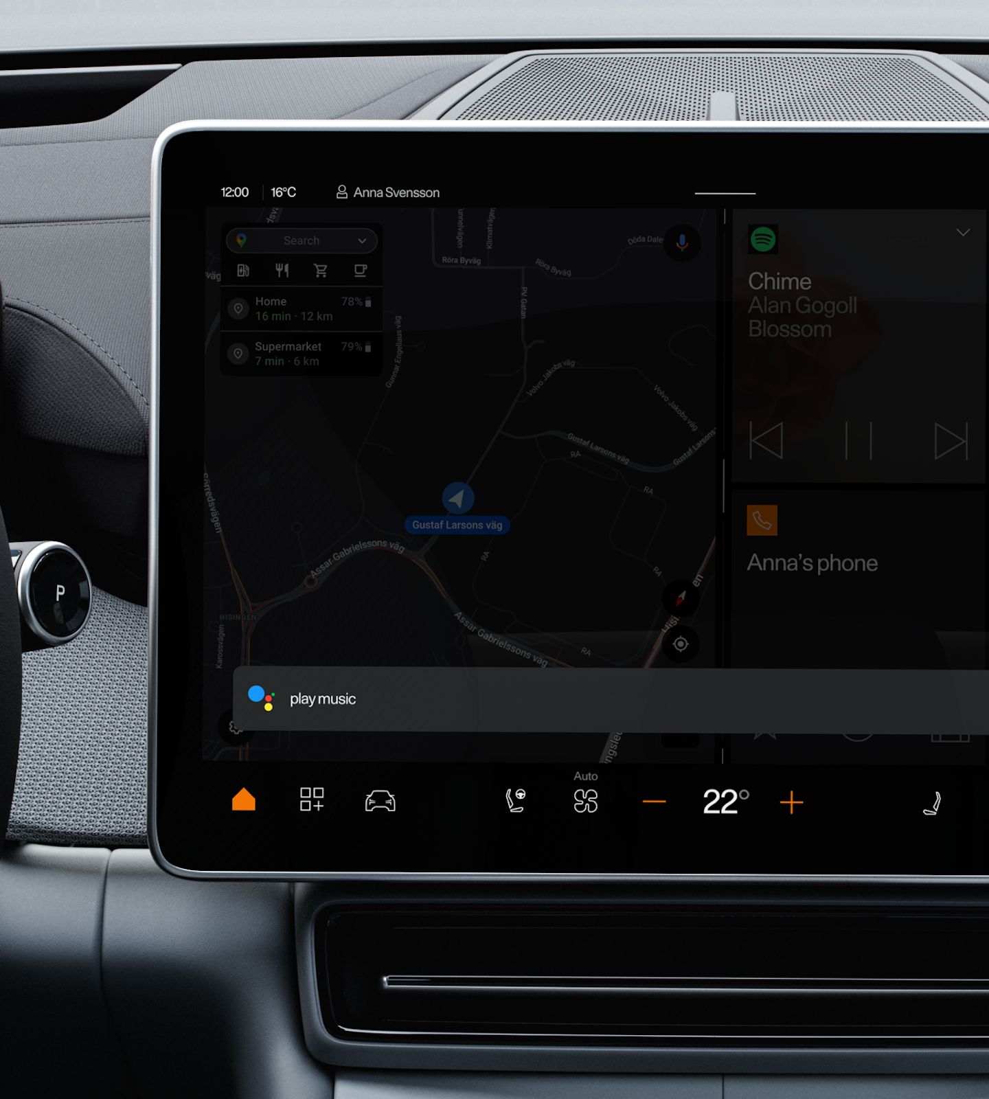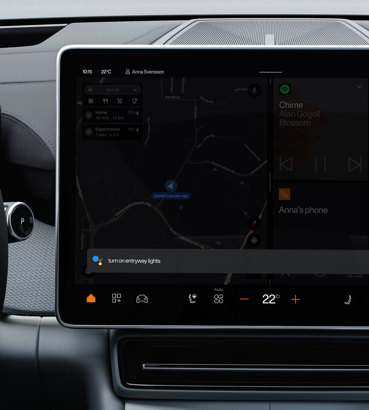 With Google¹ apps and services built-in, Polestar 4 instantly becomes part of the driver's digital ecosystem. Google Assistant and Google Maps can interact with the car to further simplify life on the road.