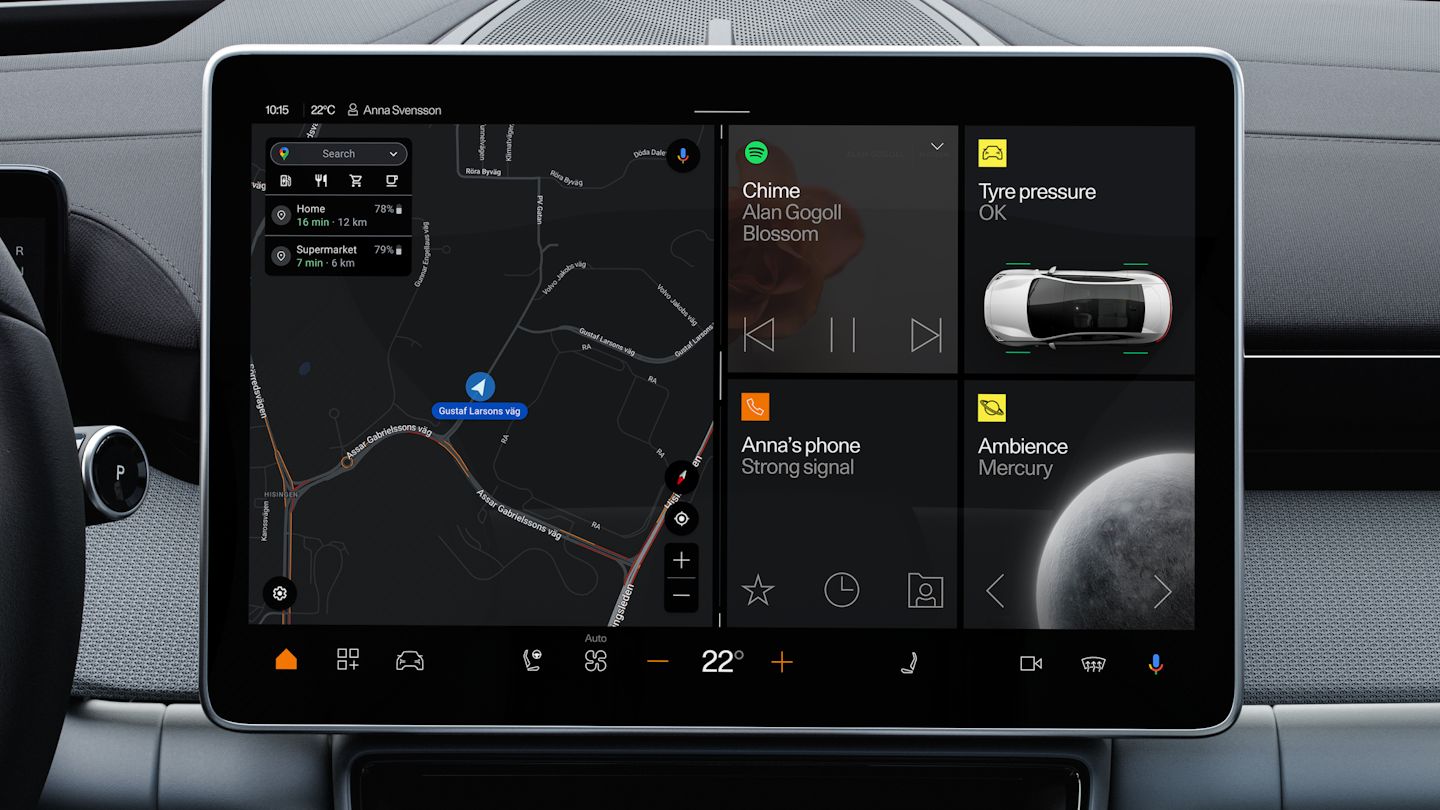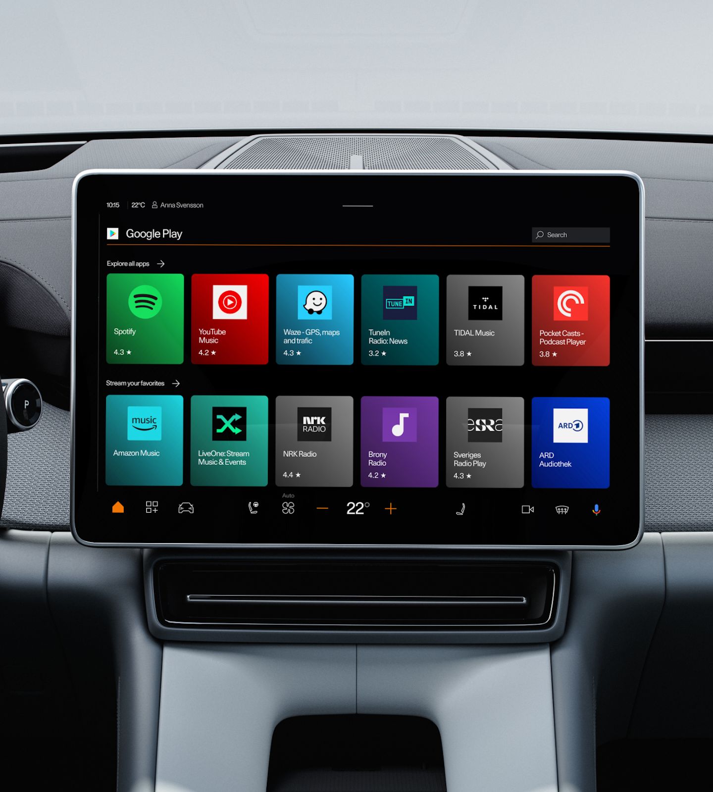Powered by Android Automotive OS¹ and presented with a Polestar-developed interface, Polestar 4’s infotainment system is as intuitive to use as the car is to drive.