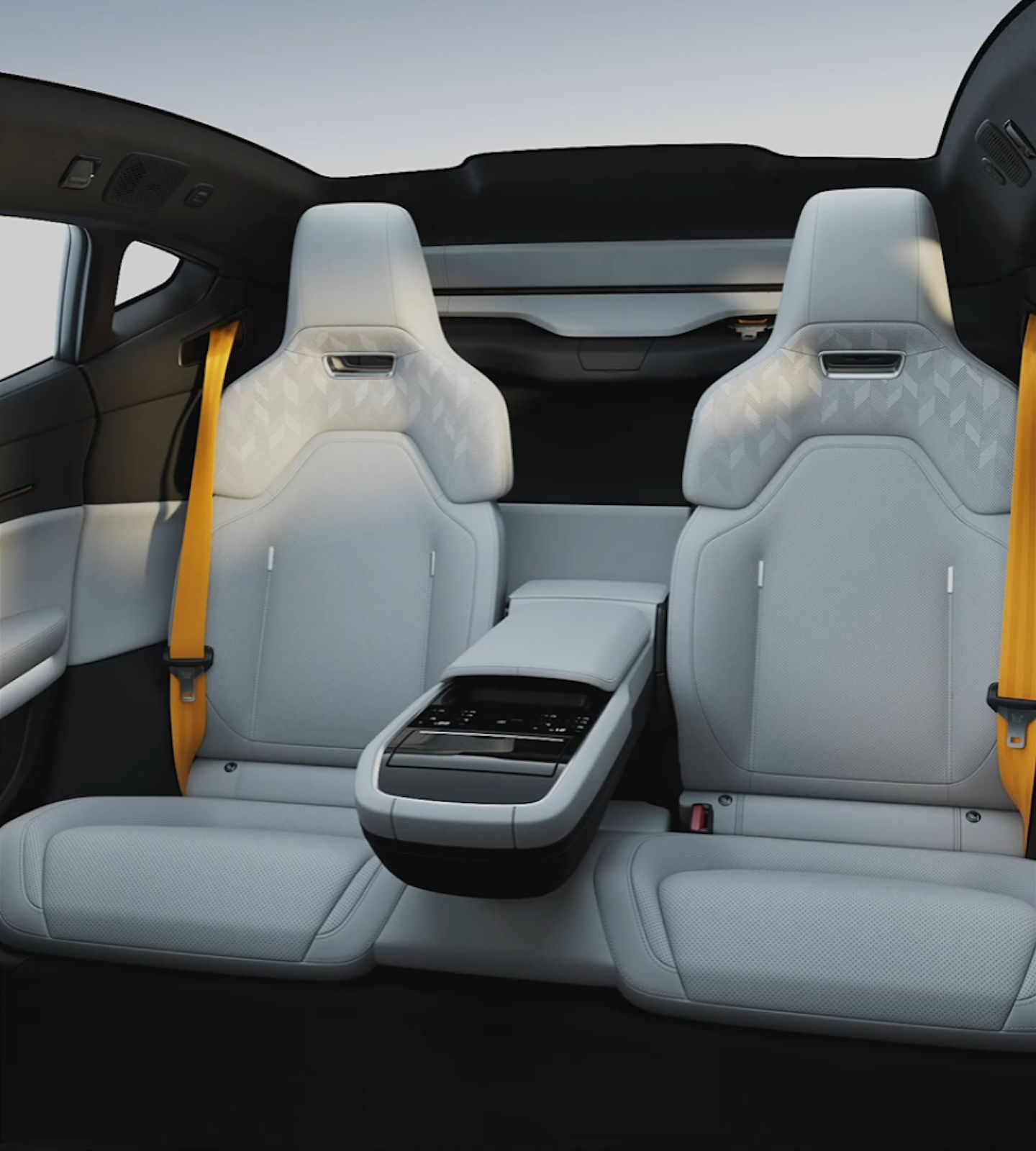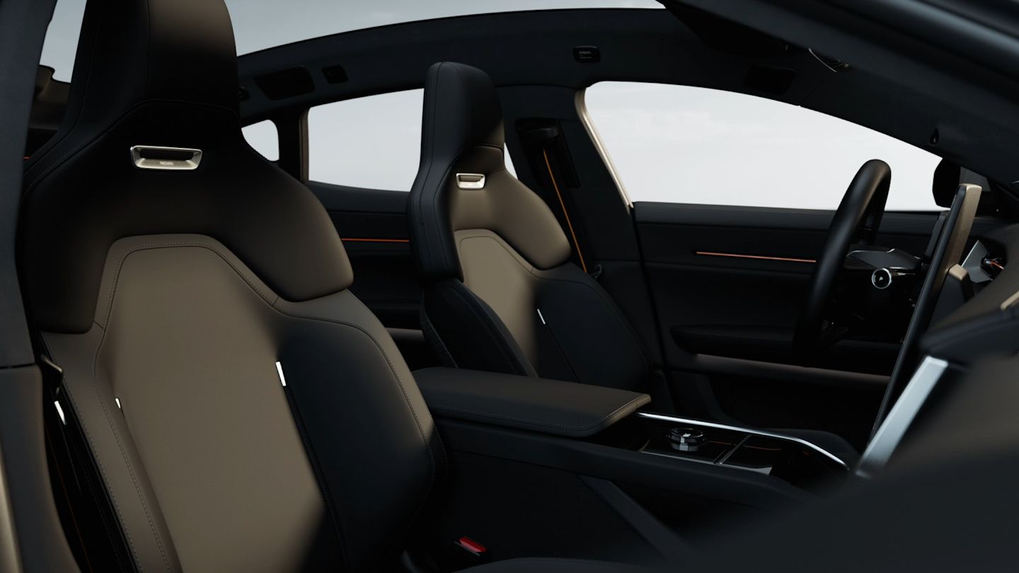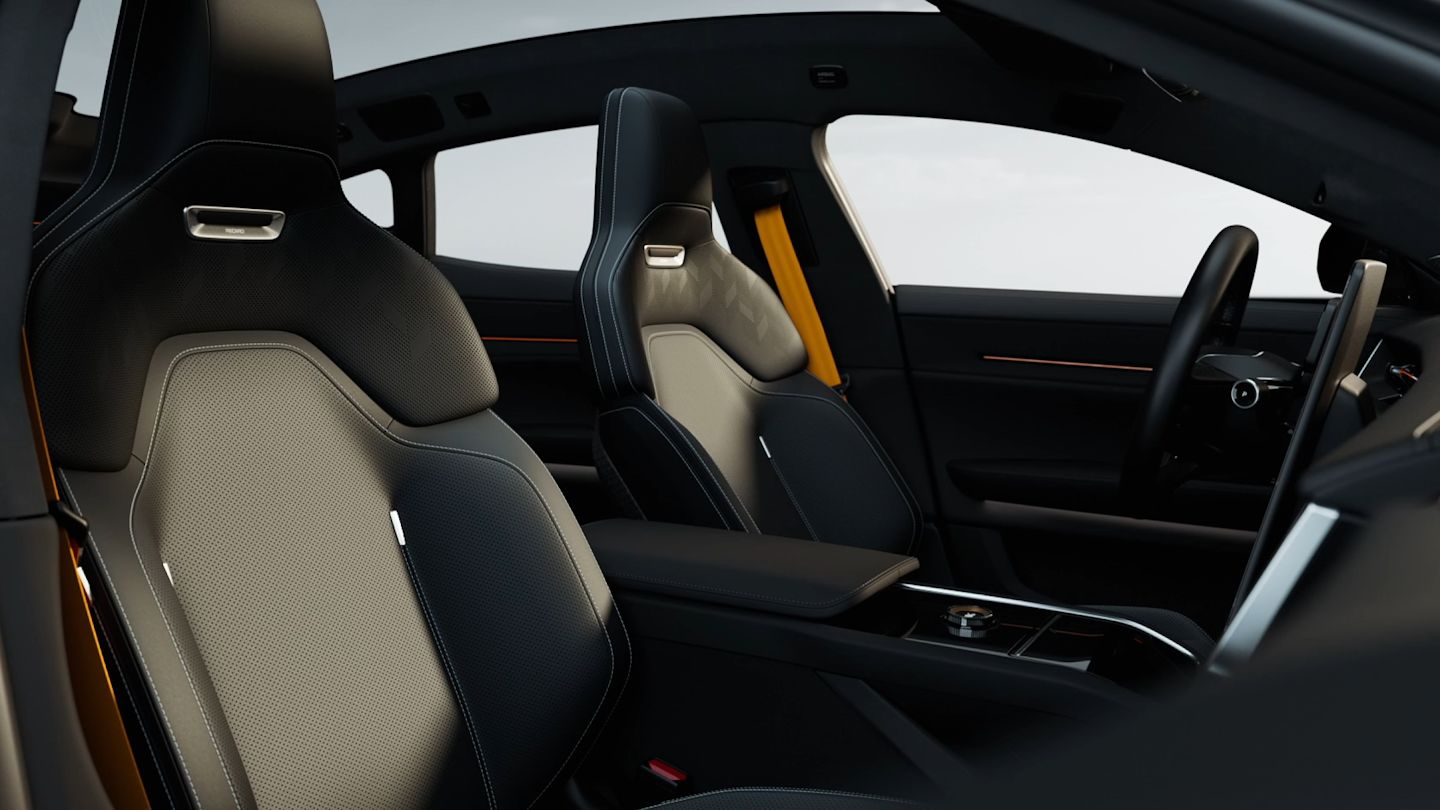 RECARO seats for support during dynamic driving. ampliTex™ finishing on the front seat backs as a credible alternative to carbon fibre. Optional front to back comfort upgrades that make every drive even more refined. The seats of Polestar 5 are designed to capture the essence of grand touring.