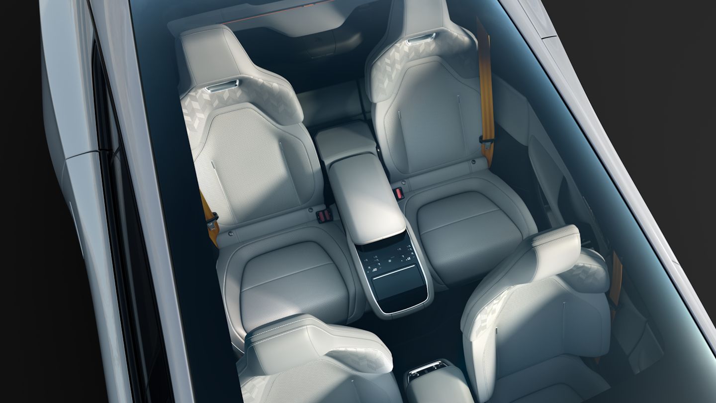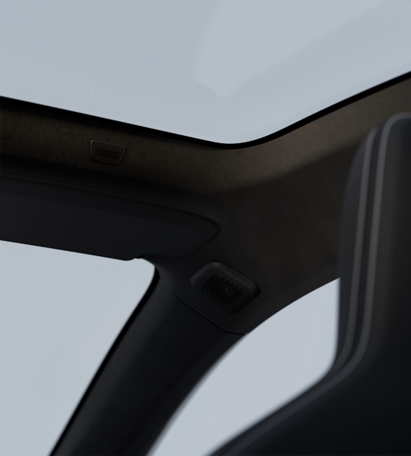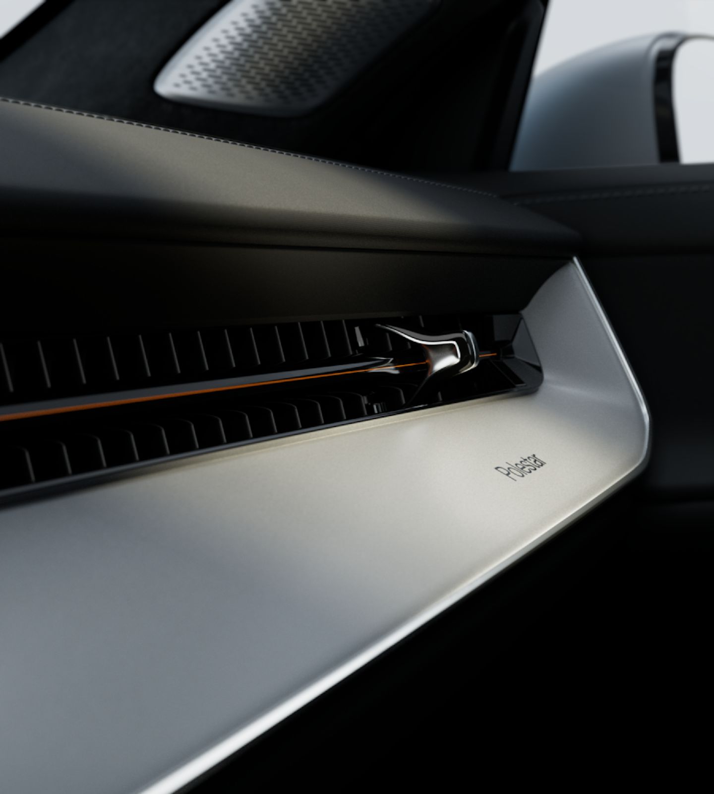 Produced with partly recycled polyester PET yarns, the Polestar-developed MicroSuede fabric lends the cabin roof additional elegance.